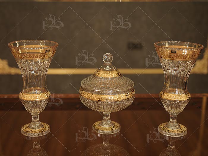 خانه ظروف کریستال سه تیکه شکلات خوری و گلدون سرویس کریستال لوریان