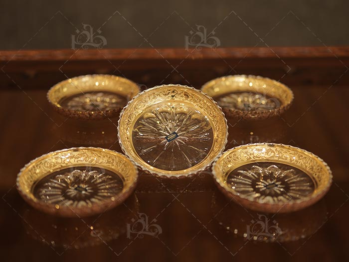 خرید ظرف پذیرایی شیرینی خوری کریستال وارداتی نشکن طلاکاری قیمت
